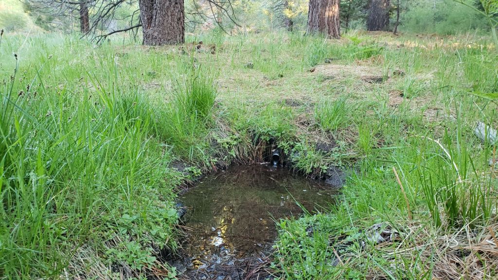 The pipe at Round Valley (9050 ft) flowing steadily on 23rd May 2025, and still flowing well as of 14th June.