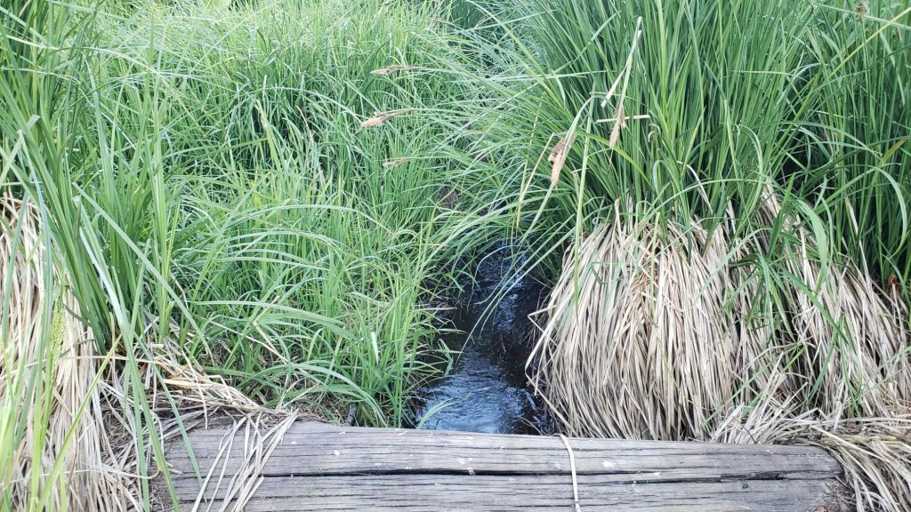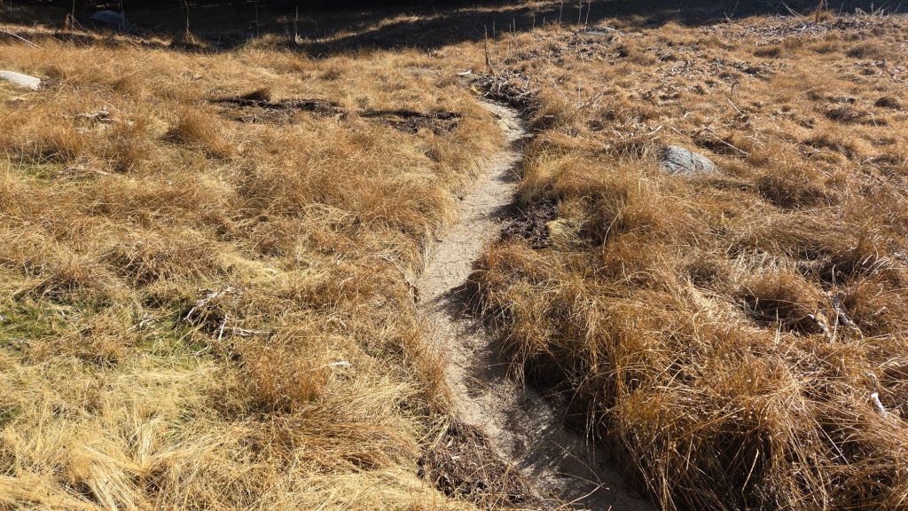 The small creek in Skunk Cabbage Meadow flowing relatively well where it is crossed by the trail on the east side of the meadow, 26th June 2025.