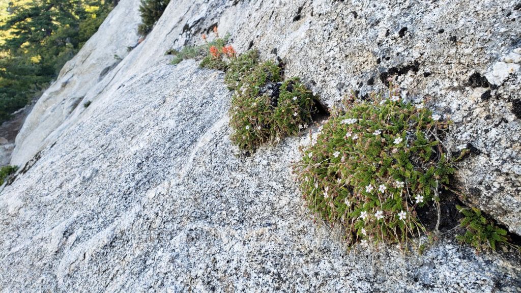 Tahquitz Ivesia (Ivesia callida) in full bloom, near Tahquitz Peak, 3rd July 2025. The Ivesia is one of the rarest and most range-restricted of the dozen or so plant species endemic to the San Jacinto Mountains. Flowering is at least one month earlier in 2025 than average.