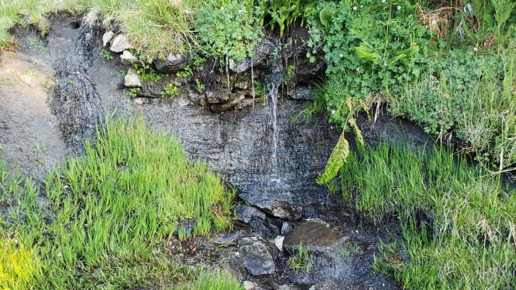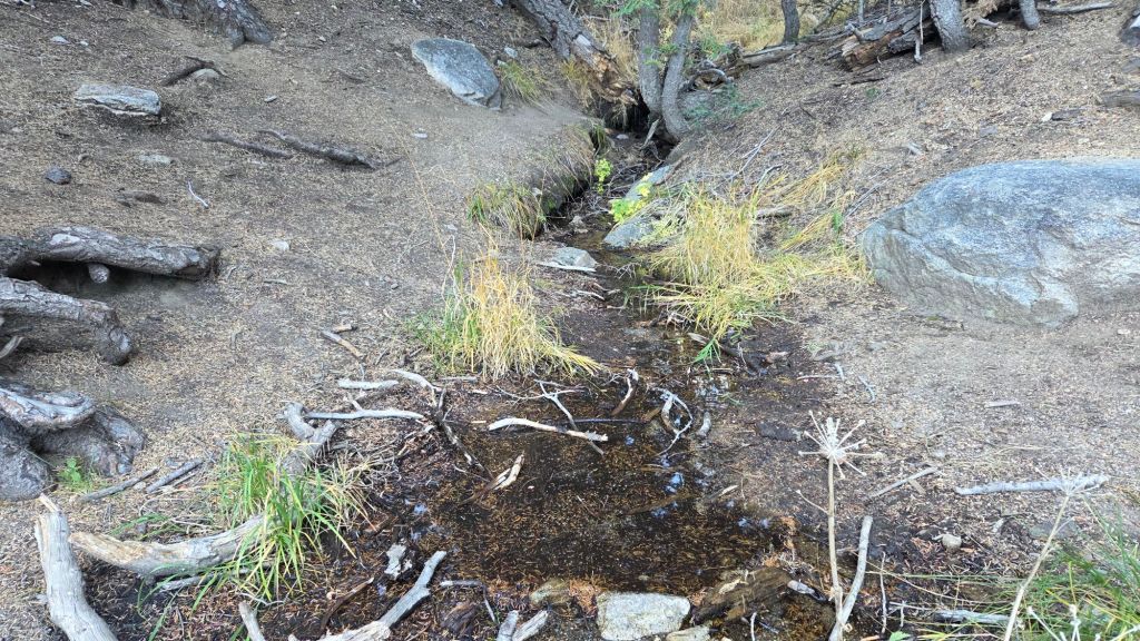 The best-known north spring immediately adjacent to the trail at Wellman’s Cienega (9300 ft), early morning 14th June 2025. A great source of water on this route but the low flow is reminiscent of the dry years of 2014-2016, rather than the recent steady flows of 2023-2024.