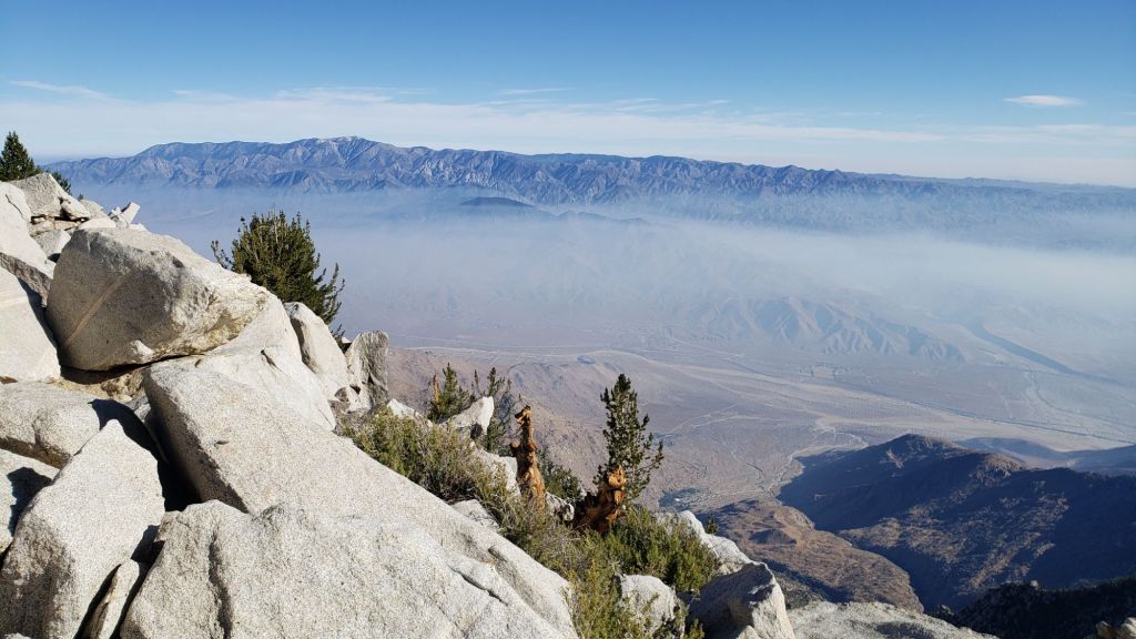 In the absence of strong winds and any hint of precipitation, there has been a serious deterioration in air quality in our region. Visibility in all directions from San Jacinto Peak on Sunday 22nd was as poor as I have ever seen – other than days with fire smoke of course – with Palm Springs completely obscured by haze (photo below).