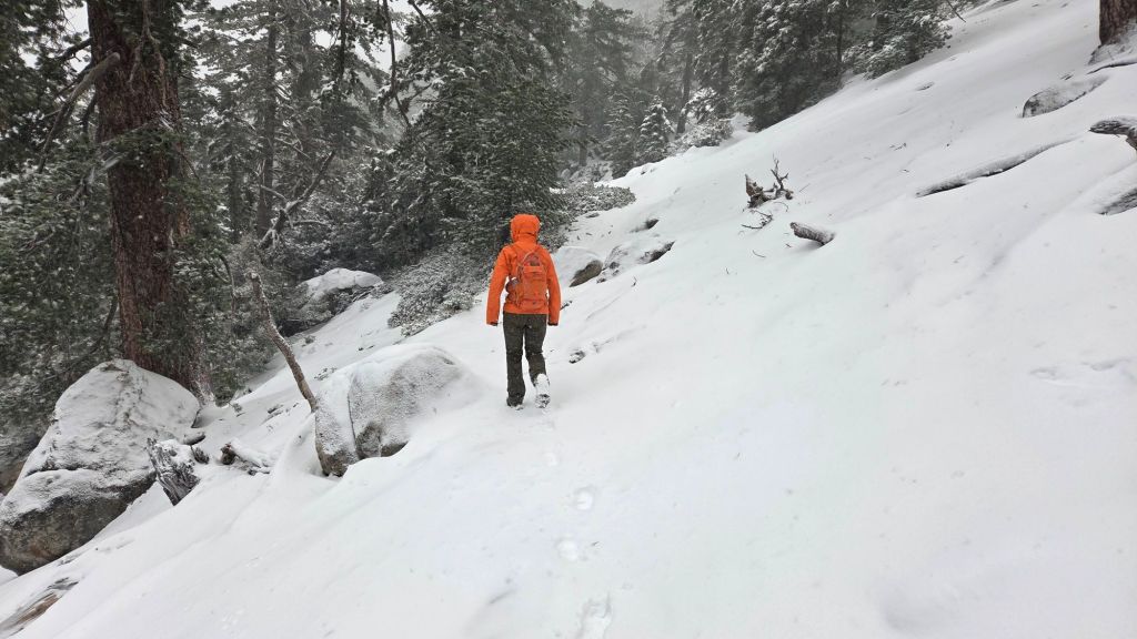 The conditions forecast for 24th-26th December are similar to those on 15th November which resulted in multiple significant hypothermia cases in the San Jacinto high country (the overlap with a holiday period adding a further complication) to which I briefly alluded in a prior report linked here. Hikers – most notably those from the Tramway where such conditions are rarely anticipated – may be ascending through rain, before encountering snow, strong winds, and significant windchills at the highest elevations. Being fully prepared for the challenging combination of both genuine winter conditions and very wet weather will be critical (at a minimum, having fully wind- and waterproof clothing, plus multiple dry layers, hats, and gloves stored in a truly waterproof pack system, is very strongly advised). A clear recognition of when to turn around in such conditions is also invaluable.