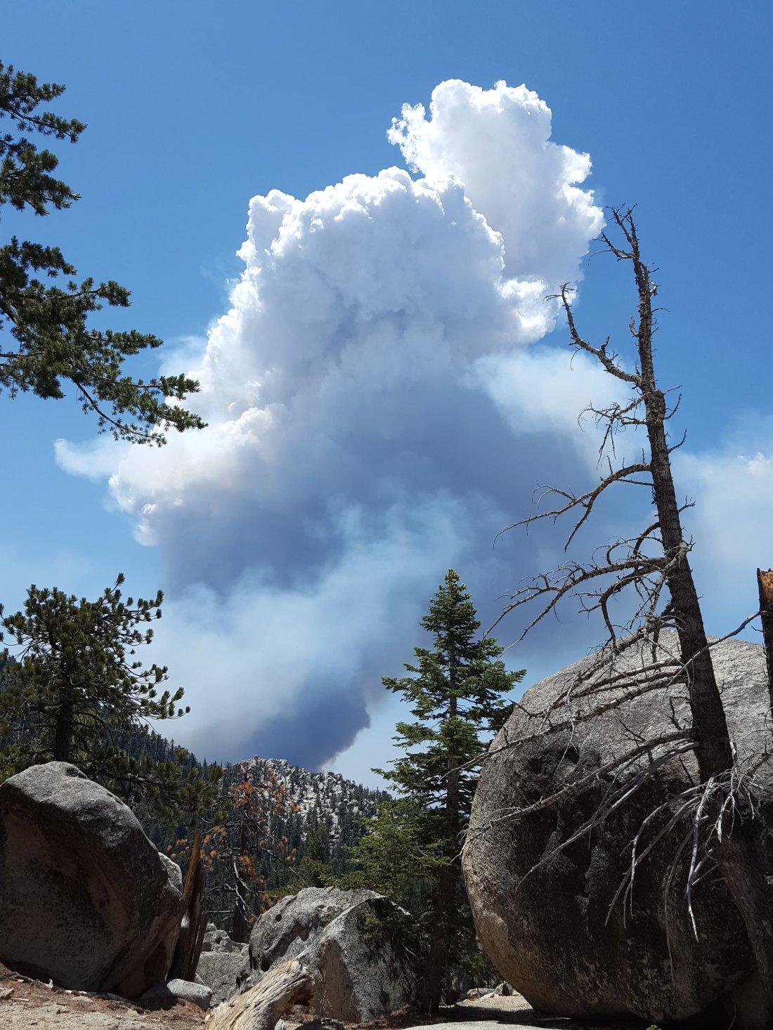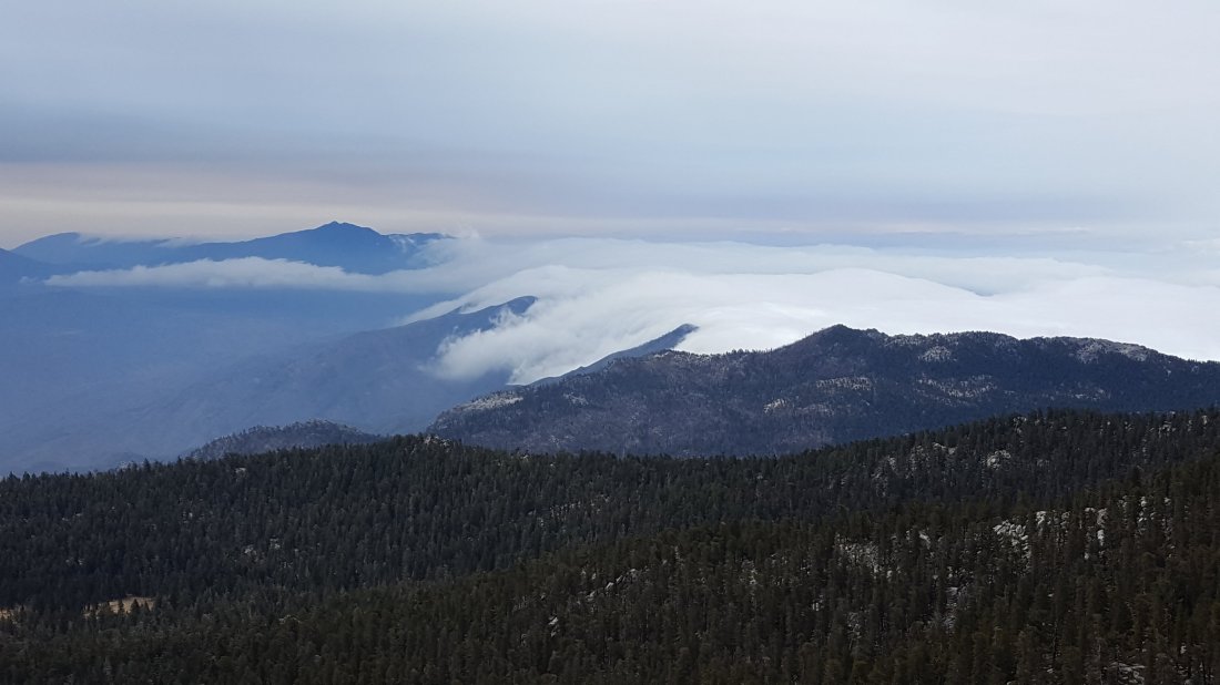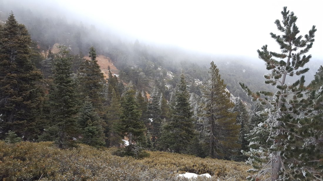 Yesterday afternoon as I hiked to San Jacinto Peak, there was a little light snowfall above 9000′. No more than about 0.25″ accumulated, but it was a good example of how unpredictable mountain weather can be, as no precipitation had been forecast whatsoever.