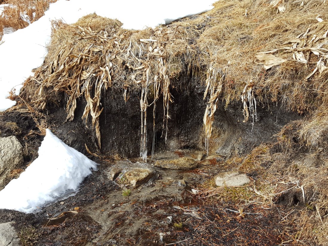 Water This is only really an issue for thru hikers. Most sources above 8000′ are frozen solid and covered with inches of ice (that is a challenge to remove even with an ice axe!). This may remain a problem for at least the next couple of weeks. Of course there is plenty of snow to melt, but that is not very efficient with stove fuel.