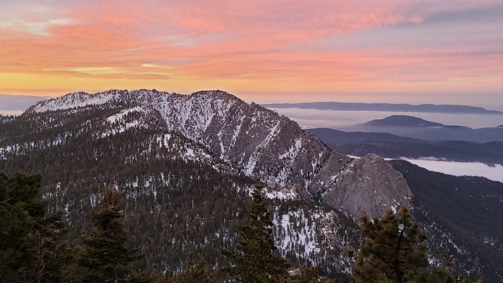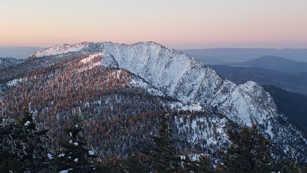 A brief update on snow and trail conditions based on hikes on three of the past four days to San Jacinto Peak. Leaving well before dawn on each day in order to make the most of colder, firmer snow, I was able to use microspikes without significant postholing all the way from Humber Park to San Jacinto Peak. Today was the first day in many weeks that I did not carry snowshoes on my pack. Although snow conditions on descent a couple of hours later were softer, it was early enough to minimise postholing. Nevertheless as usual the ascents were more fun than the descents. Snow conditions will continue to firm up with much colder weather from today into next week.