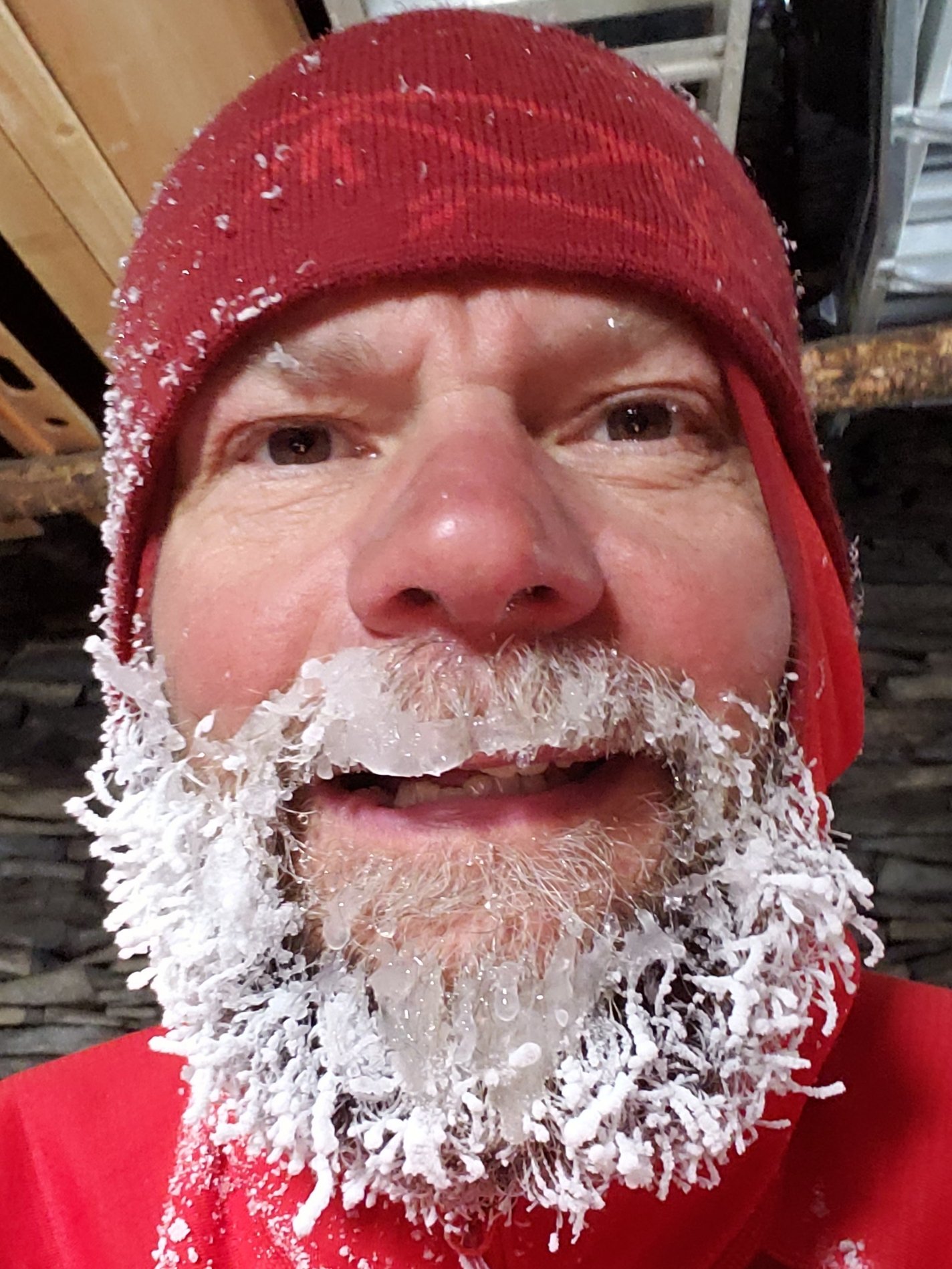 At San Jacinto Peak (10,810ft/3295m) yesterday, Monday 28th December 2020 at 1330 the air temperature was 11.4°F (-11°C), with a windchill temperature of -16.8°F (-27°C), 93% relative humidity, and a wild SW wind sustained at 26 mph gusting to 39.0 mph.