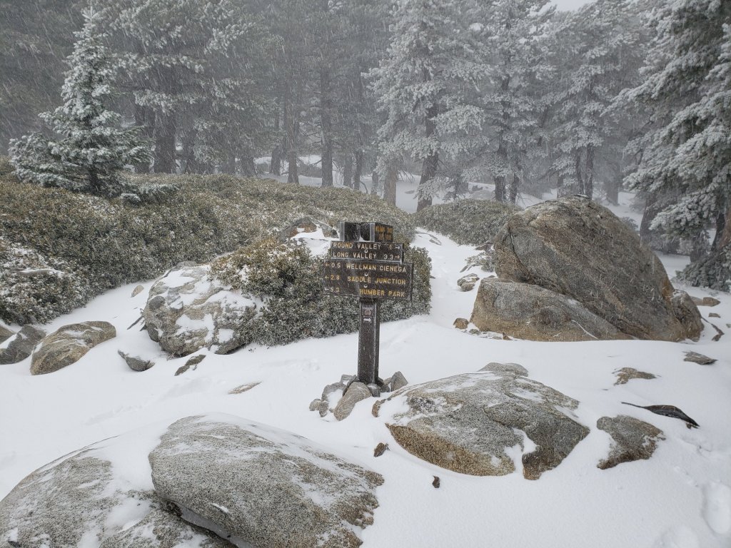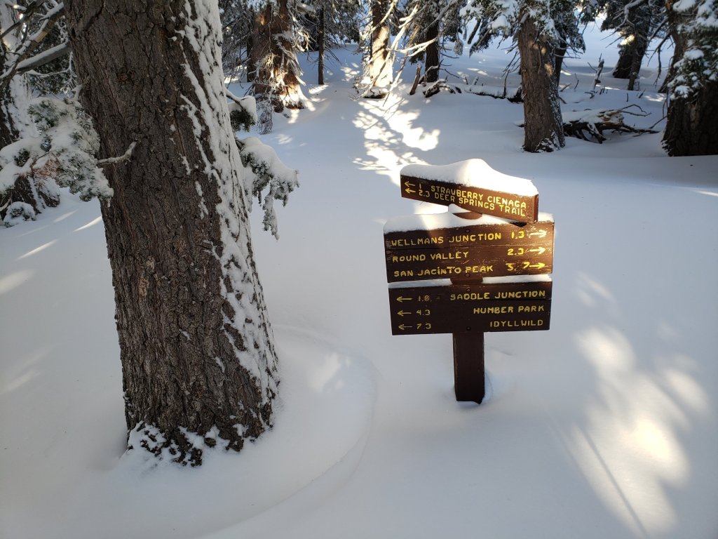 Round Valley Trail from the Tram through to Wellman Divide has been well-traveled and a good track through the snow is easy to follow. Note however that Tram hikers on New Year’s Day put through various confusing and steep trails directly from Round/Tamarack valleys toward San Jacinto Peak.