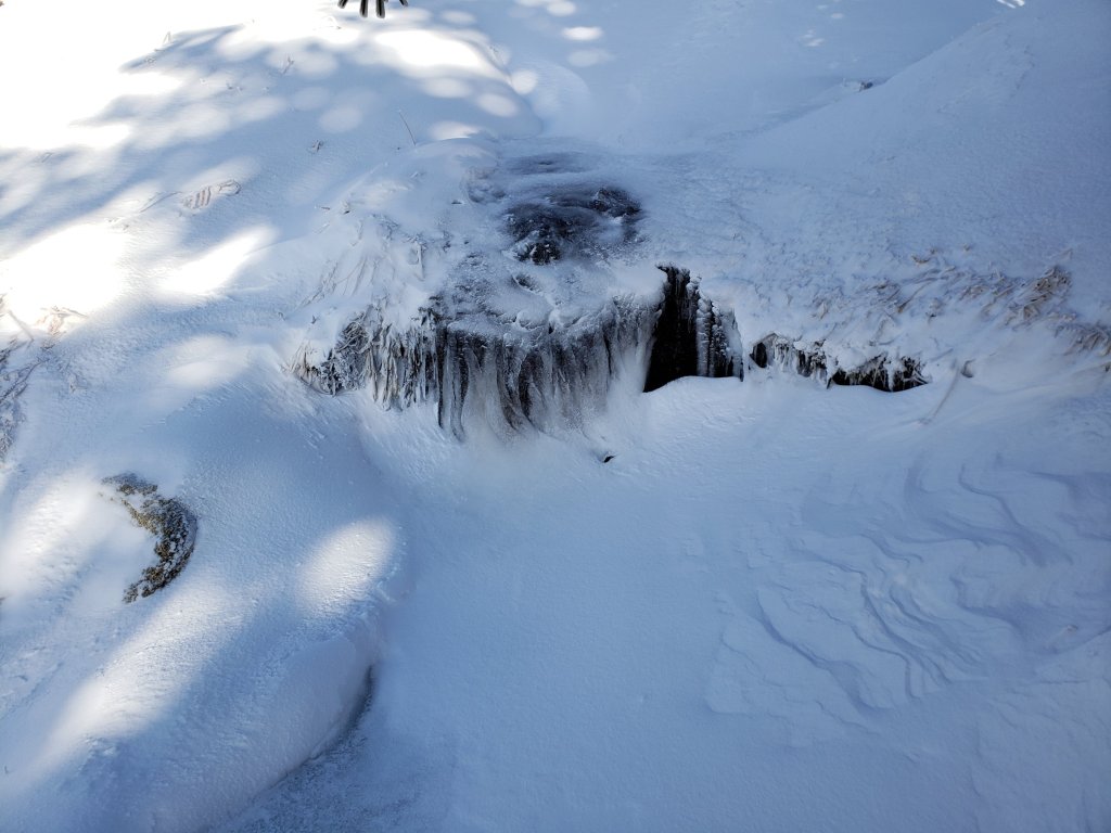 With persistent spring-like conditions in the high country (>8500′), the snow softens rapidly during the day but postholing doesn’t get too bad until after noon. Snowshoes remain helpful for any off-trail travel. Conditions underfoot will broadly remain similar for the foreseeable future, but will be more challenging on warmer days (such as this weekend, 18th-19th January). Despite cool overnight temperatures, melting has been steady at all elevations, and at an alarming rate for early January.