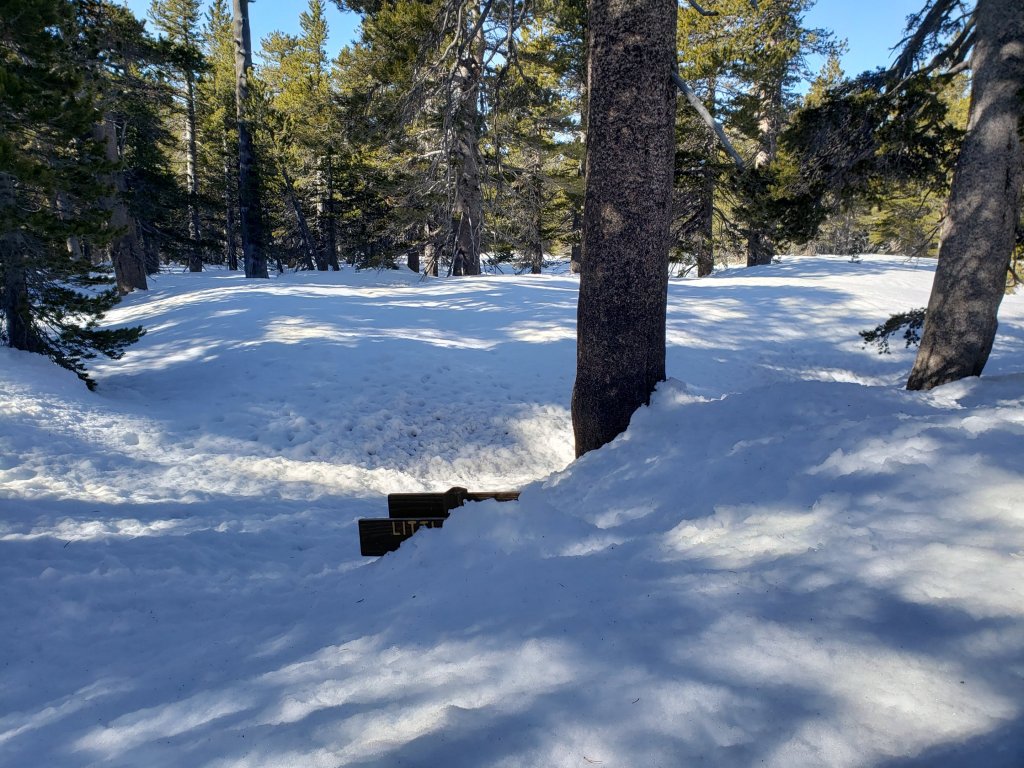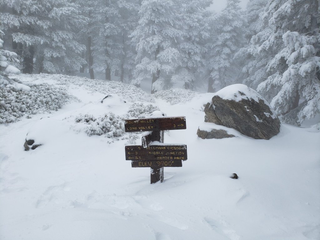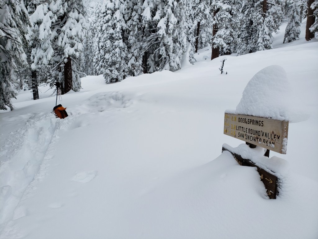 All trails above about 8500′ are completely snow-covered, with depth depending on elevation (see below).