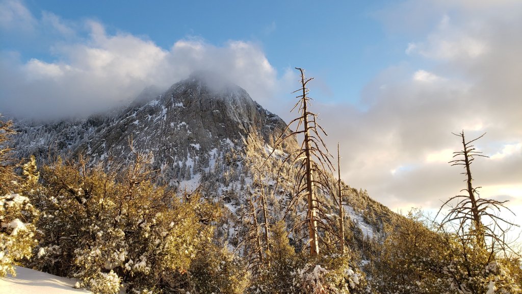 All trails above about 4000′ are snow-covered. The light dusting of snow below that elevation was melting rapidly this afternoon.
