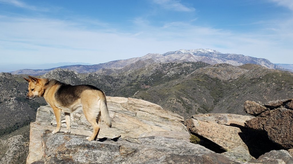 At San Jacinto Peak (10,810ft/3295m) today, Monday 15th February 2021 at 0855 the air temperature was 30.1°F (-1°C), with a windchill temperature of 12.9°F (-10°C), 69% relative humidity, and a gusty NNW wind sustained at 14 mph gusting to 26.1 mph.