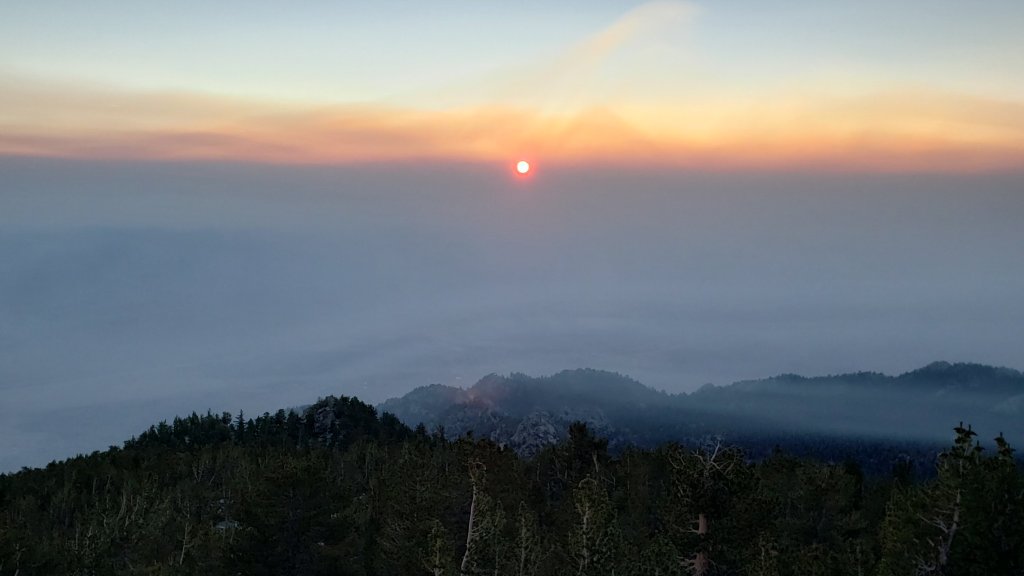 [UPDATE 1st October 2021: three days of steady Santa Ana winds have dramatically improved air quality across the San Jacinto mountains and the wider region. This morning from San Jacinto Peak visibility was the best it has been in a couple of months, with just a narrow band of smoke visible at about 11,000ft elevation far to the west.]