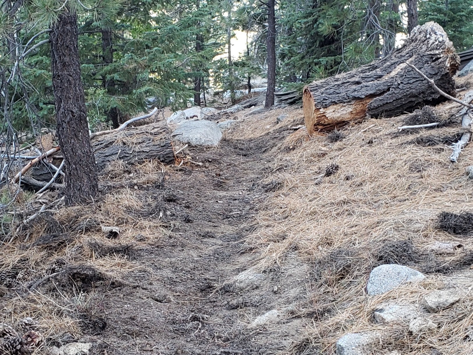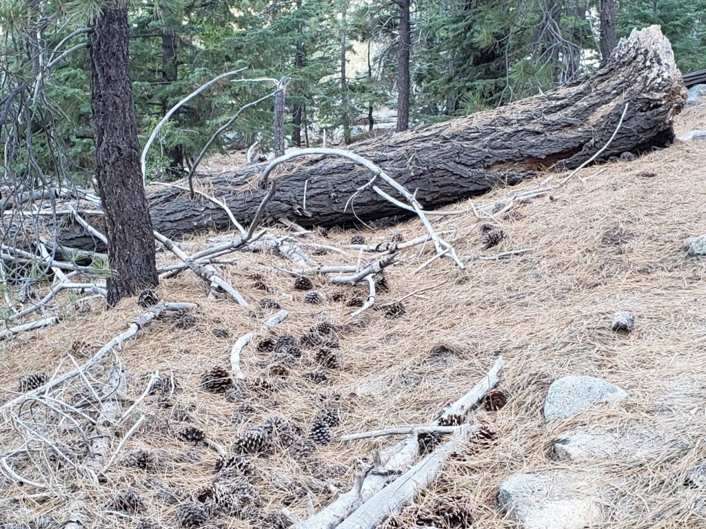 Marion Mountain Trail was cleared of multiple tree hazards by a California Conservation Corps team in late August, along with the adjacent PCT/Deer Springs Trail for 0.6 mile north to the south end of Fuller Ridge Trail. One new tree came down in early November 2021 on the PCT just yards south of its junction with Marion Mountain Trail, but it is easily passable for hikers.