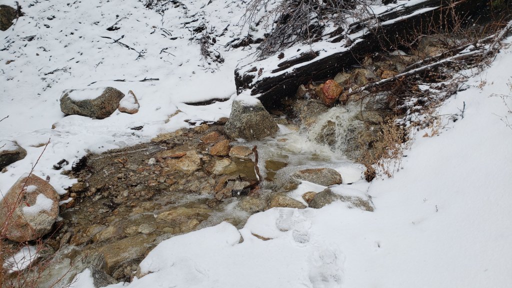 Much more significant than the snow falls were the excellent rainfall totals, with a whopping 4.35 inches measured in Idyllwild at 5550ft. It was such a pleasure to see all the minor creeks and springs flowing in full force along Devil’s Slide Trail this afternoon, in most cases for the first time in at least two-and-a-half years.