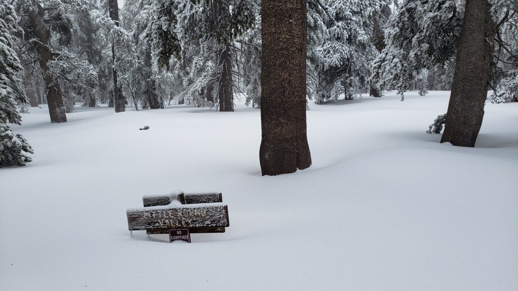Long Valley (8600ft): about 14 inches (was 12 inches on 24th; many thanks to Kyle Eubanks for that measurement)