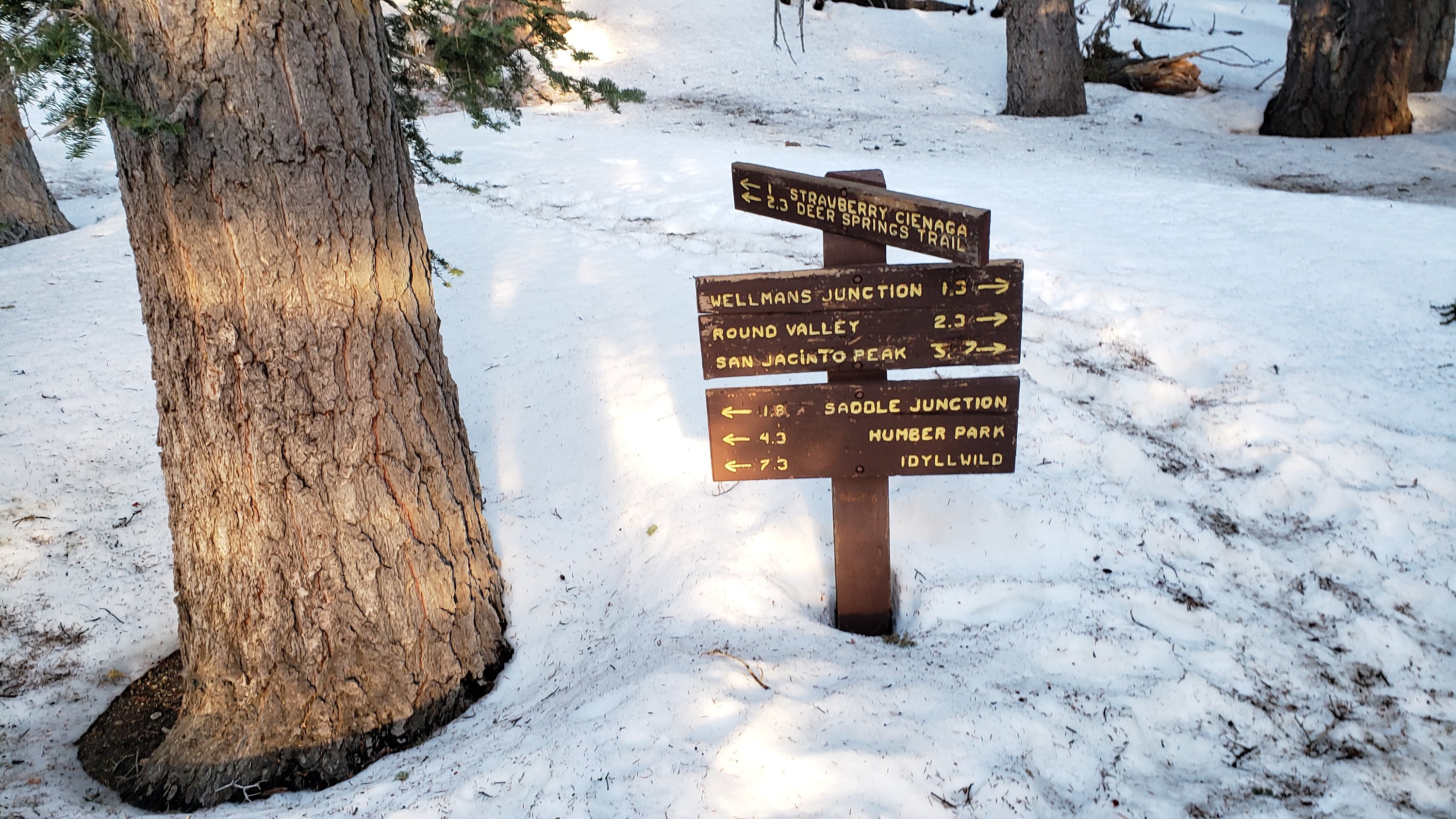 The trail from Saddle Junction to near Reeds Meadow, then past Little Tahquitz Meadow to connect to the PCT is currently an ugly posthole track through soft snow that does not remotely follow the established trail routes.
