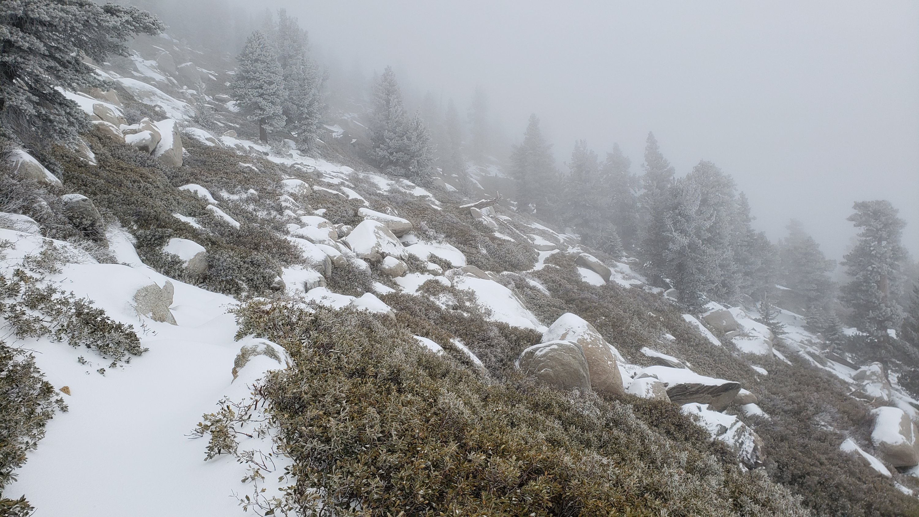 Despite periodic warmer temperatures, hikers should nevertheless be prepared for temperatures near freezing in the high country, and below freezing when considering wind chill effects (see below for some of my most recent weather observations from San Jacinto Peak).