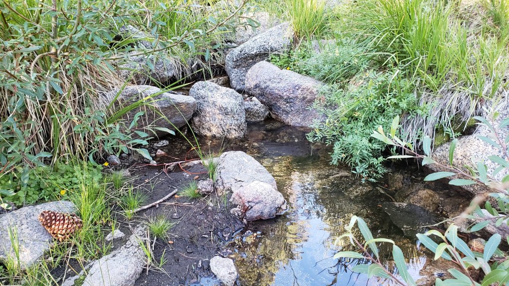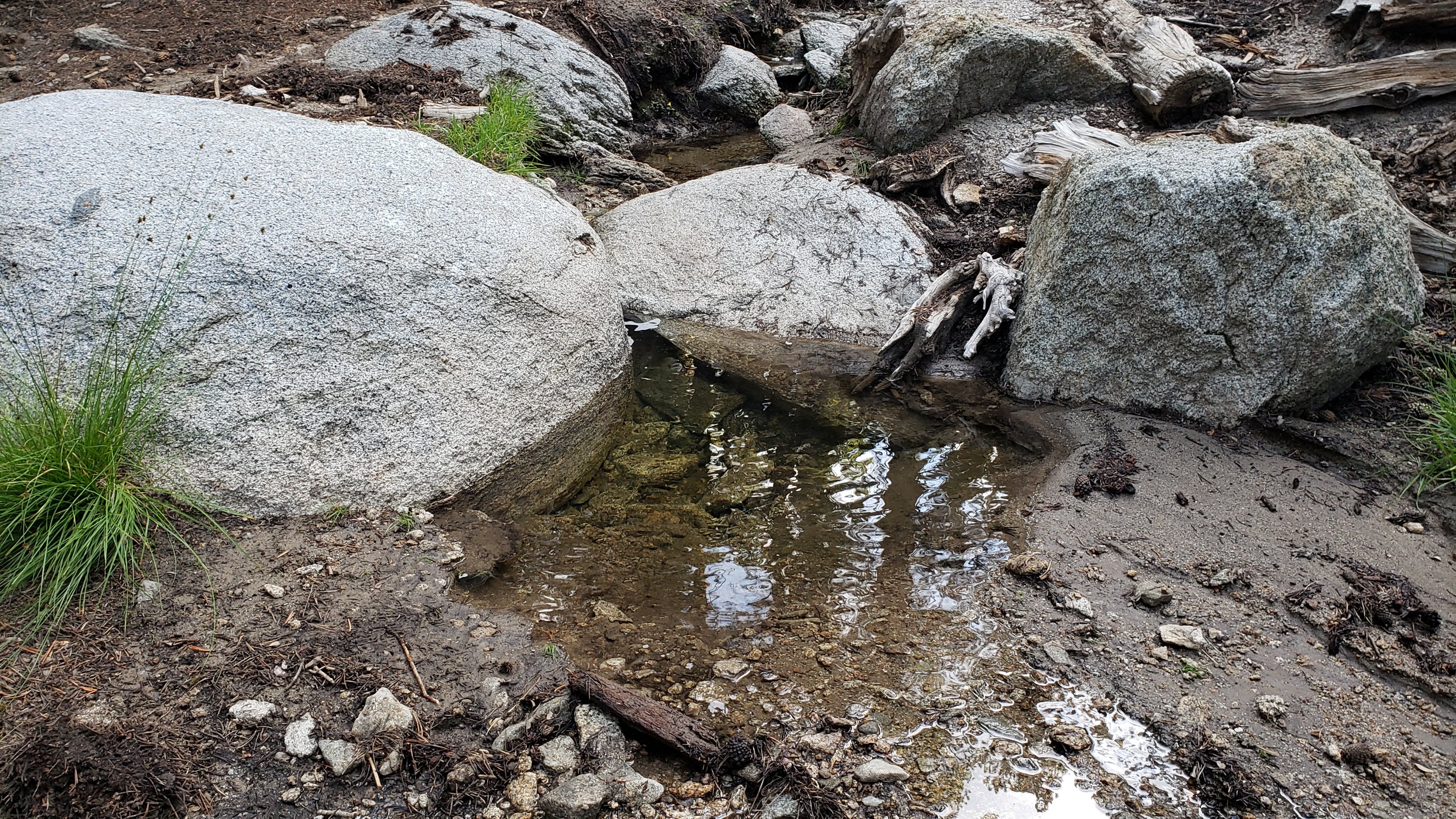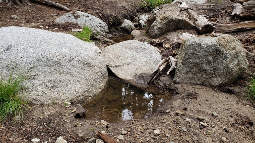 Shooting Star Spring (below Little Round Valley but above the North Fork of the San Jacinto River crossing) is now flowing very weakly and is inadequate for filtering.