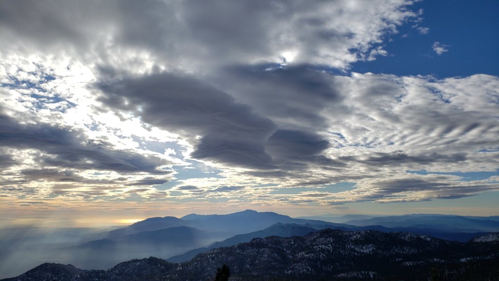 The storm expected on 28th November failed to materialize, producing only below average temperatures, wind, and spectacular clouds (photos below). A second forecast storm system may bring some light precipitation to the San Jacinto mountains on 2nd December, and possibly again on 4th-5th.