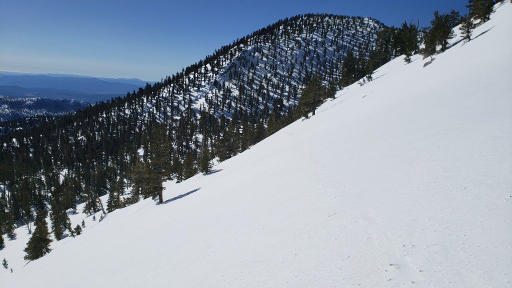 By 1st February there was a somewhat meandering snowshoe track from Round Valley (and presumably Long Valley) up to San Jacinto Peak, ultimately using the East Ridge route from near Miller Peak, that generally followed lower angle terrain and avoided the traversing slopes of the Peak Trail.