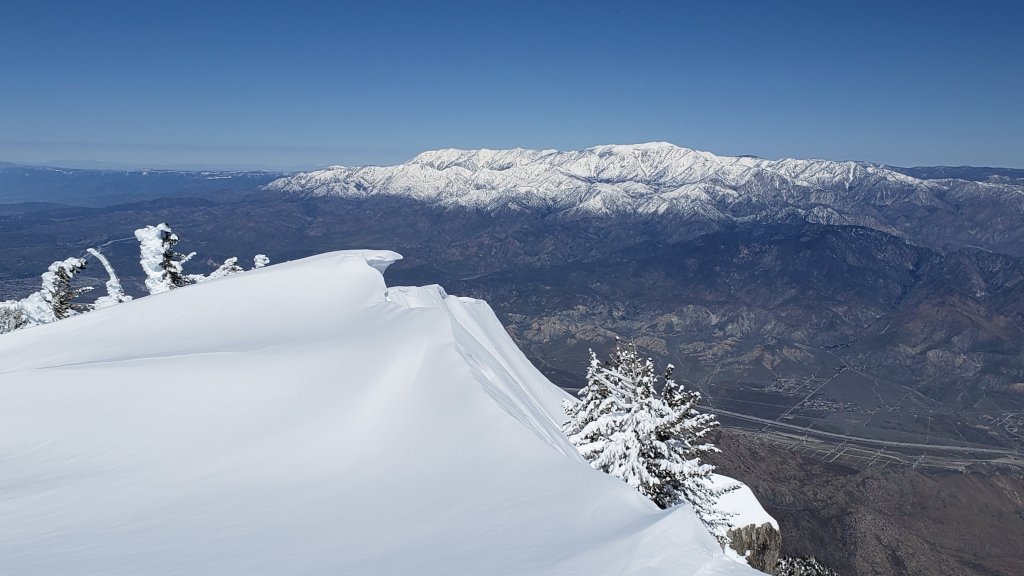 San Jacinto Peak (10810 ft): 100-105 inches [10 inches], greatest depth of this winter, and since at least 2011 at this location