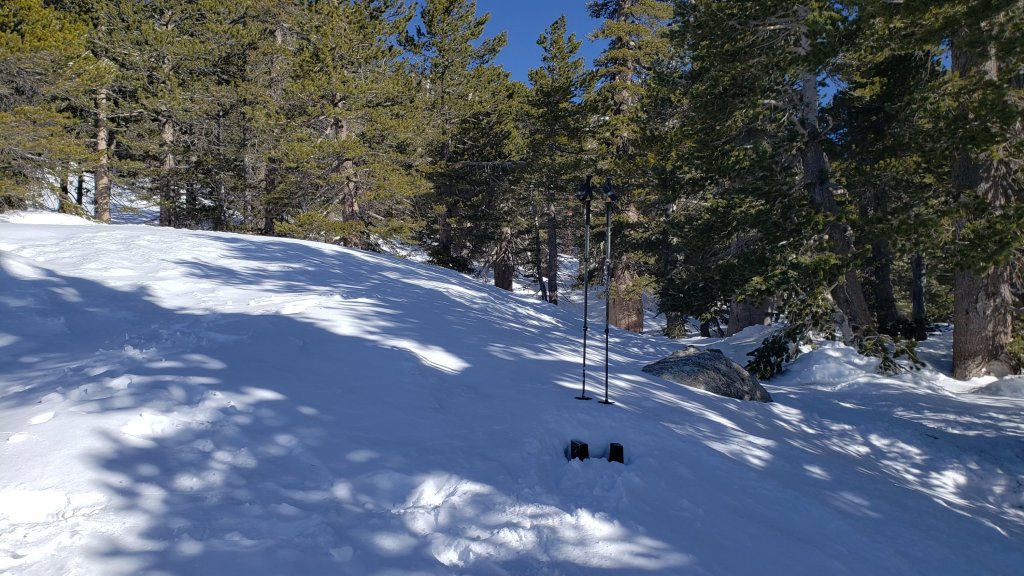 Crampons – with hiking poles and/or an ice axe, depending on terrain – are potentially useful everywhere above about 9000 ft, when cold temperatures on some days, plus freeze/thaw cycles, lead to hardening of the snow surfaces. They could be especially useful over the next few weeks (depending on temperature) anywhere off-trail in the high country, and on-trail on certain moderate and higher angle slopes, at a minimum on the Peak Trail above Wellman Divide, the Wellman Trail, Deer Springs Trail above Little Round Valley, and uppermost South Ridge Trail, and on both flanks – but critically on the north face – of Tahquitz Peak.
