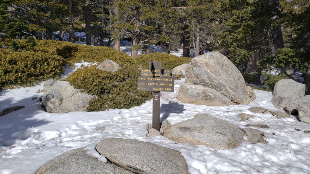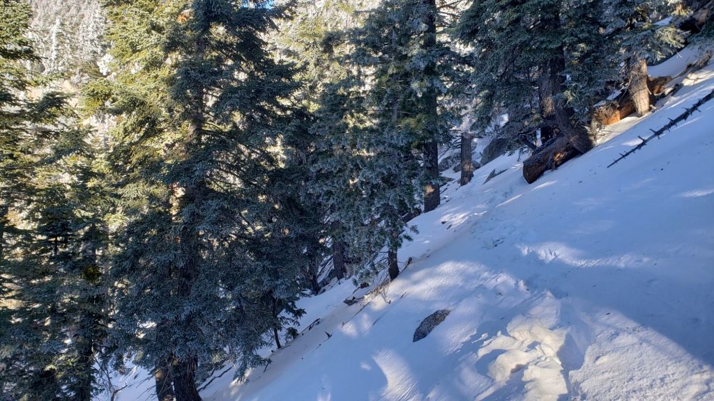 Deer Springs Trail has a moderately traveled track to Little Round Valley, with a single posthole track continuing up to Summit Junction (0.3 mile from San Jacinto Peak).