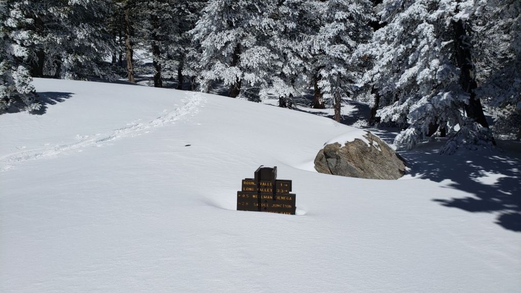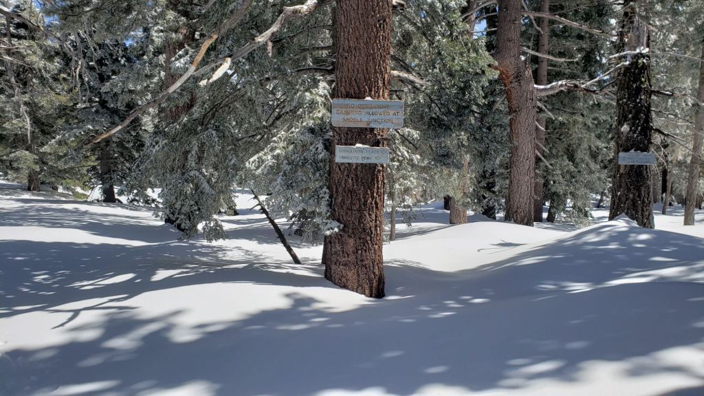 Only a few major tracks have been broken through the snow at this time including Devil’s Slide Trail, onward via the PCT, Wellman, Peak, and East Ridge trails to San Jacinto Peak.