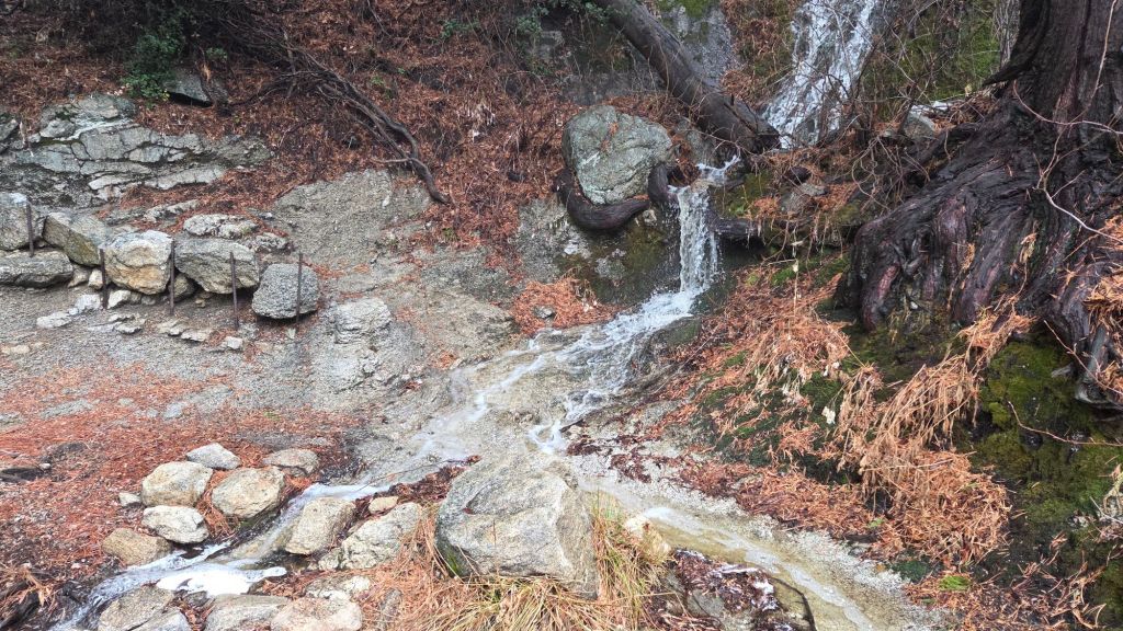 Carrying spikes remains advisable everywhere above about 9000 ft. Sections of ice and icy snow that remained from November are now largely obscured under very thin fresh snow cover (>9900 ft), or ice from frozen rain, making them especially treacherous. This is especially true on the Peak Trail above 10,100 ft, and on upper Deer Springs Trail (>9500 ft). Spikes tend to be especially helpful for descending, even when they do not seem necessary for ascending.
