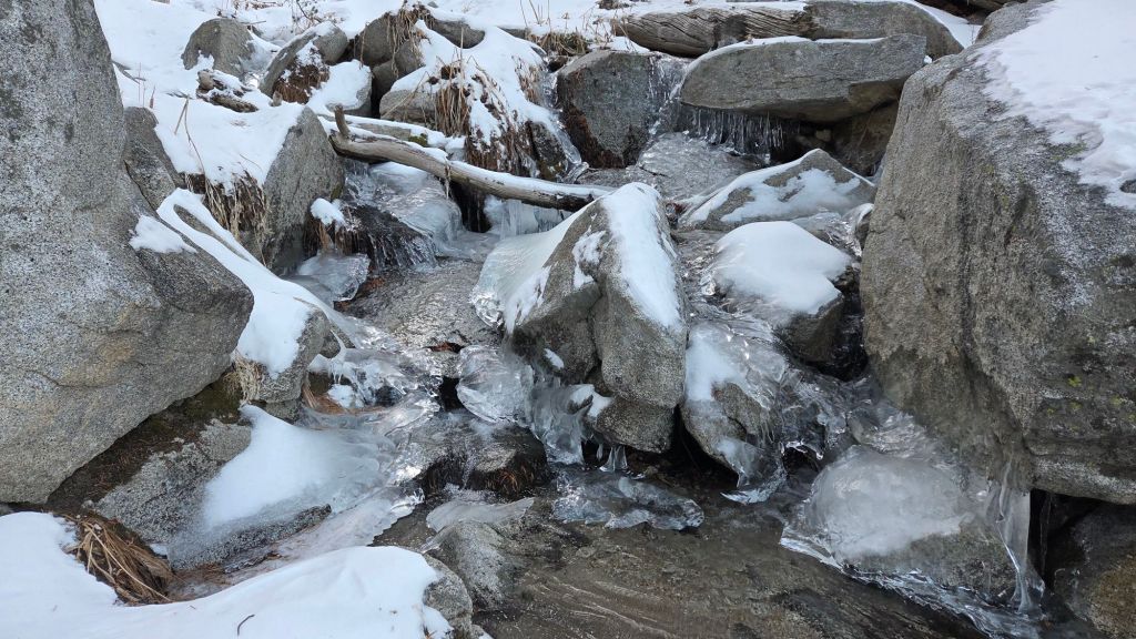 Although snow is thin, high country trails are becoming compacted from hiker traffic, and will continue to undergo freeze/thaw cycles, combining to turn powder into firm, locally icy snow. This ice can be unexpectedly treacherous in places.