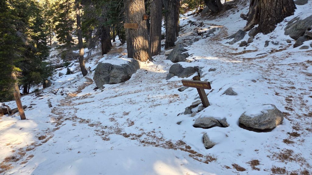 Seven Pines Trail [surveyed 12th January] is functionally clear of snow to 8000 ft, and thereafter snow cover is very thin and increasingly patchy. There is currently no track to follow through the snow patches.